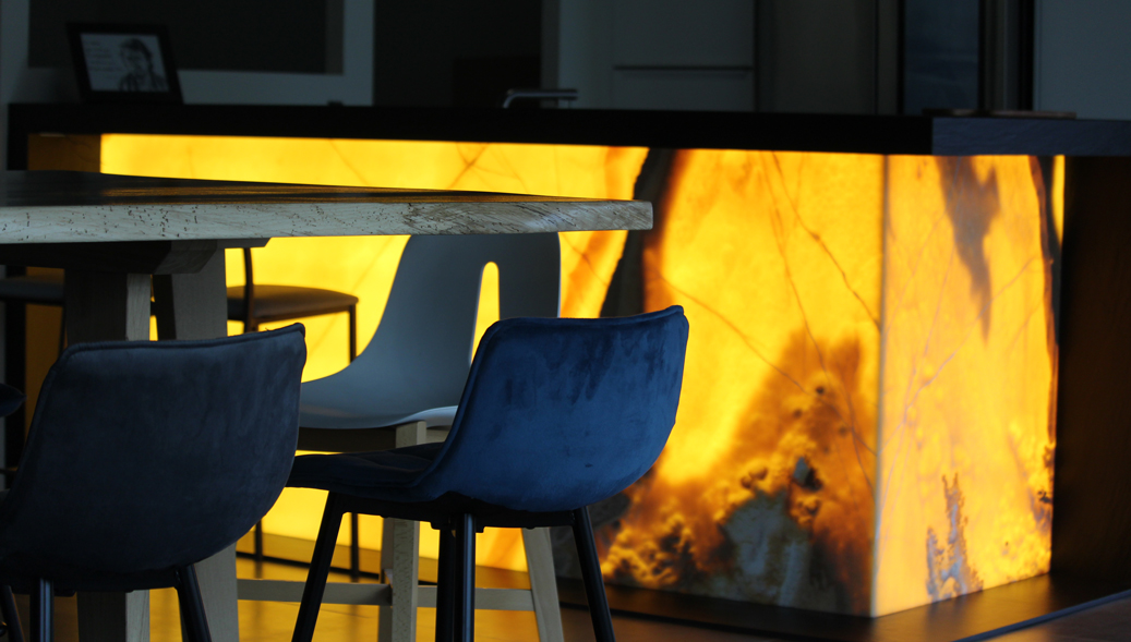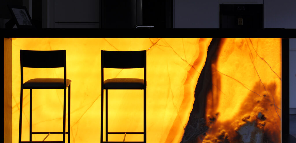 Grâce à la nature translucide du marbre onyx, notre bar offre un effet de rétroéclairage subtil et magnifique. Illuminé par des LED douces et réglables, il crée une ambiance envoûtante et chaleureuse, parfaite pour des soirées mémorables entre amis ou en famille.
