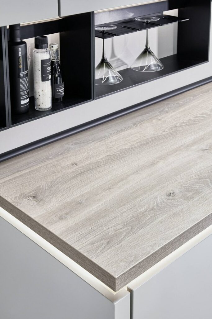 Grâce à leur revêtement de surface durable, les plans de travail stratifiés sont résistants aux taches, aux éraflures et à l’usure quotidienne.
